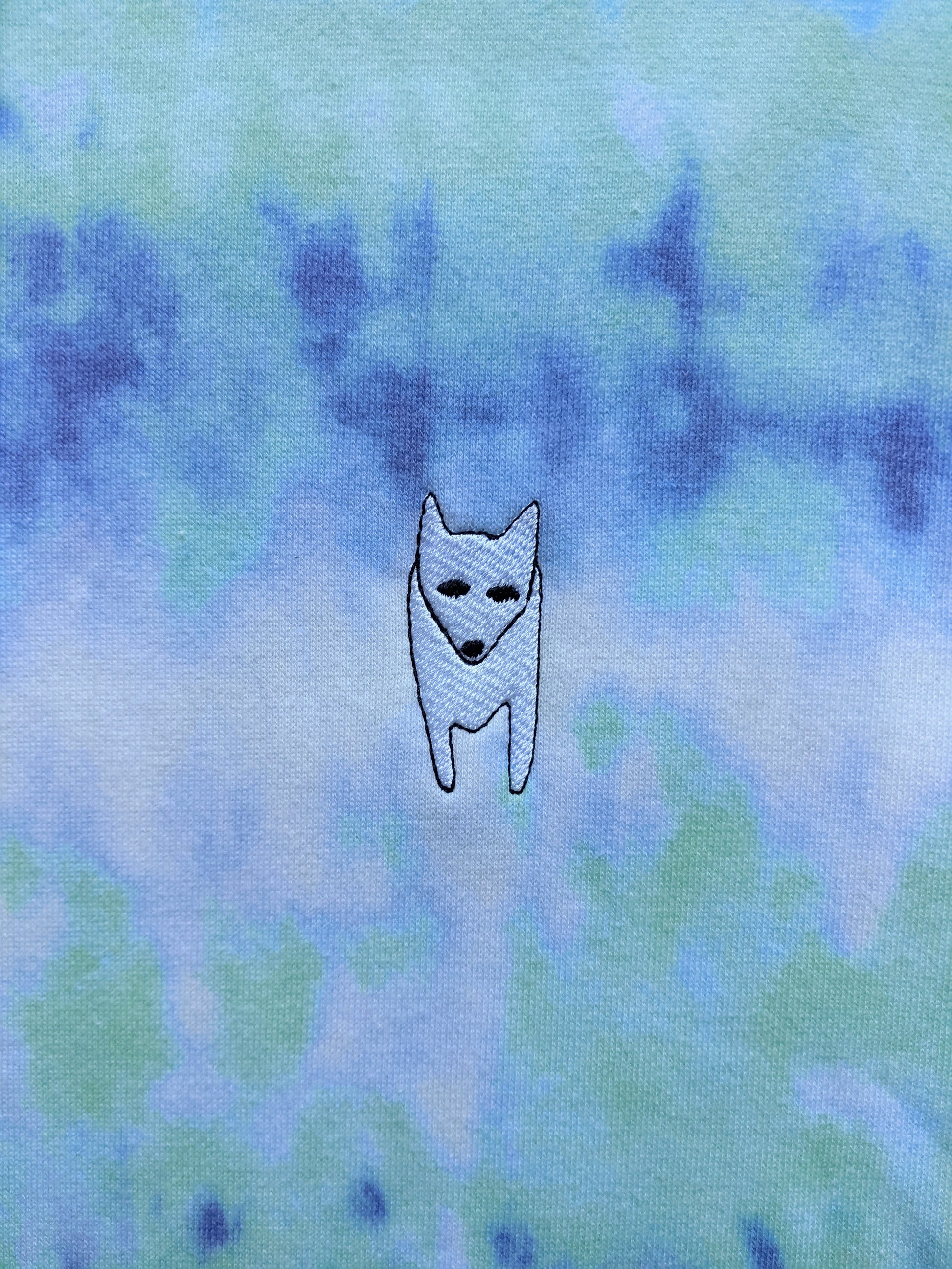 Blue Tie Dye Arctic Fox Embroidery Hoody